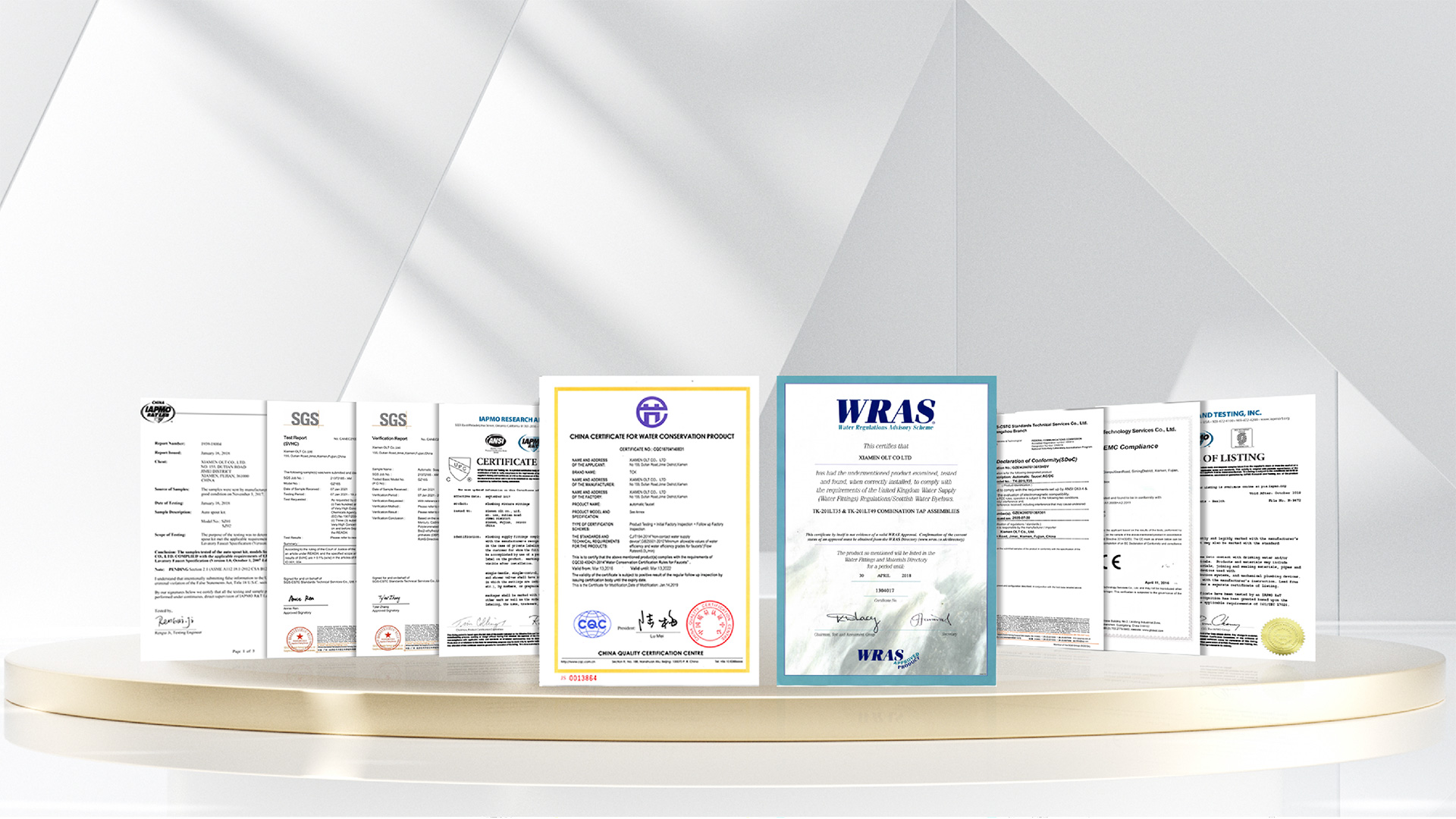公司通过了CuPC、NSF、WRAS、ACS、KTW、W270、watermark多项水认证; CE、UL,CCC电气认证;ISO9001、ISO14001体系认证; 知识产权管理体系;科学技术成果评价等多项国内国际认证。 产品多项技术指标达到国际行业标准。